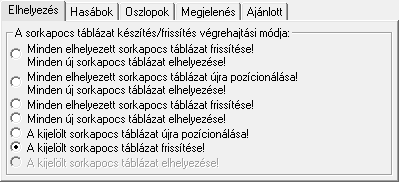'A sorkapocs táblázat készítés/frissítés végrehajtási módja:'