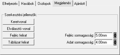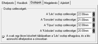 A csoportban egyrészt a készítendő táblázat oszlopainak szélességét adhatjuk meg.