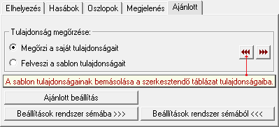 Lehetőség van a táblázat tulajdonságait a beállítás sablonba másolni a